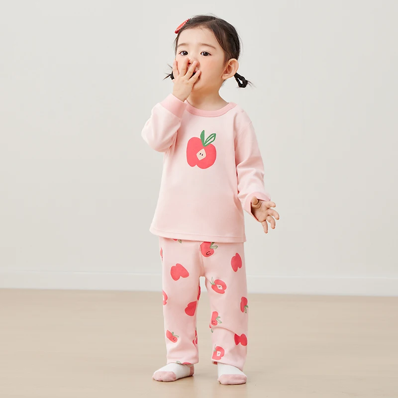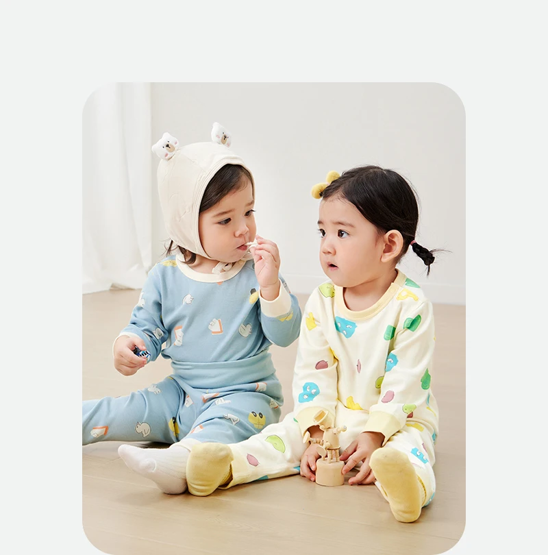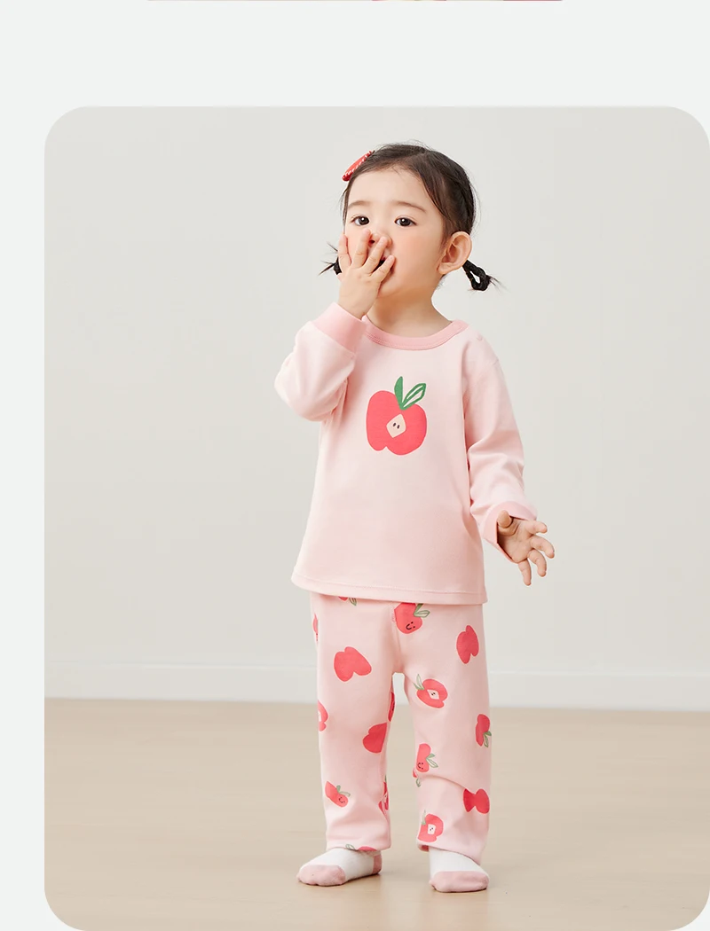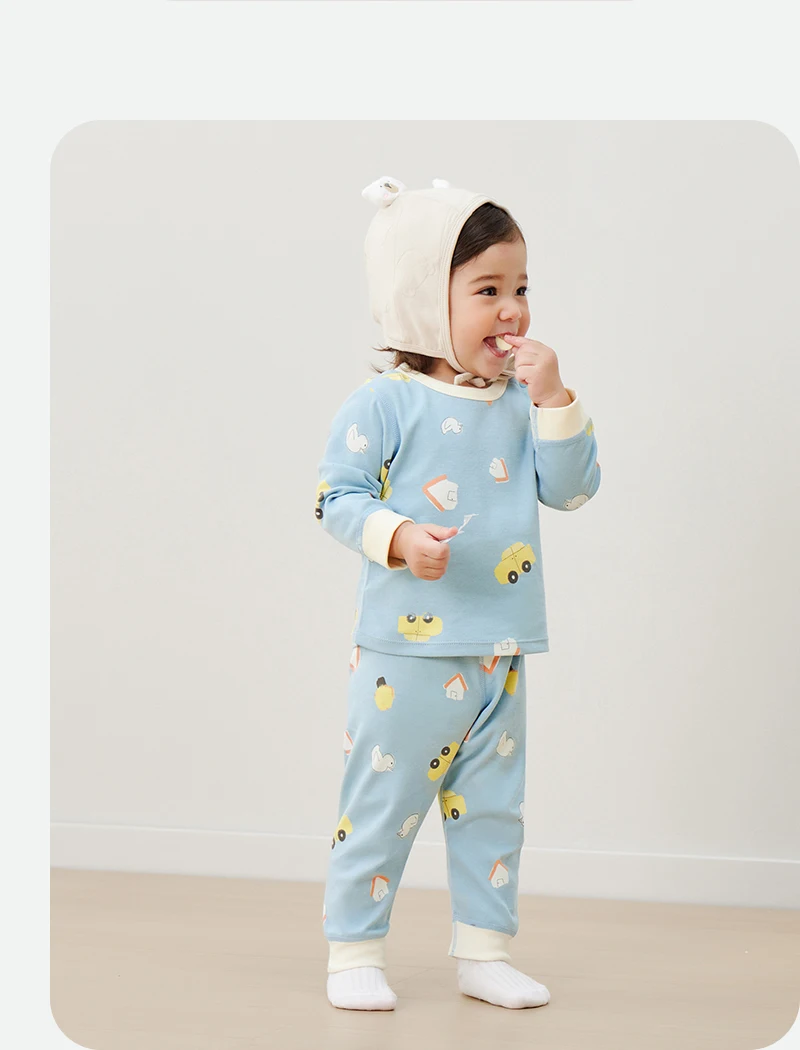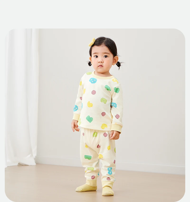 طقم ملابس داخلية حرارية صغيرة من القطن الخالص للأولاد والبنات 2025 نسخة ربيع جديدة بيجامات للأطفال