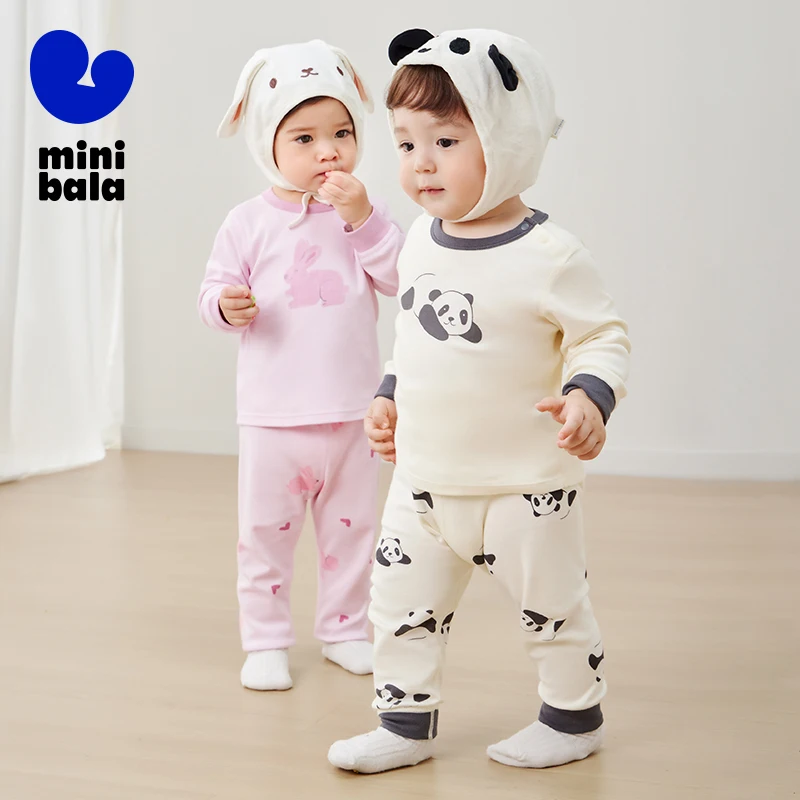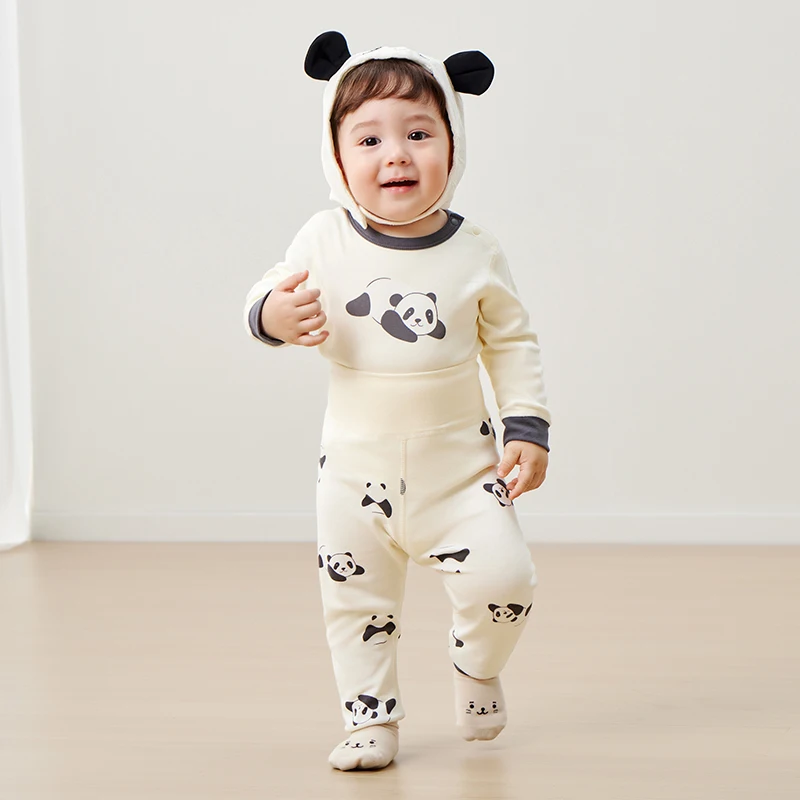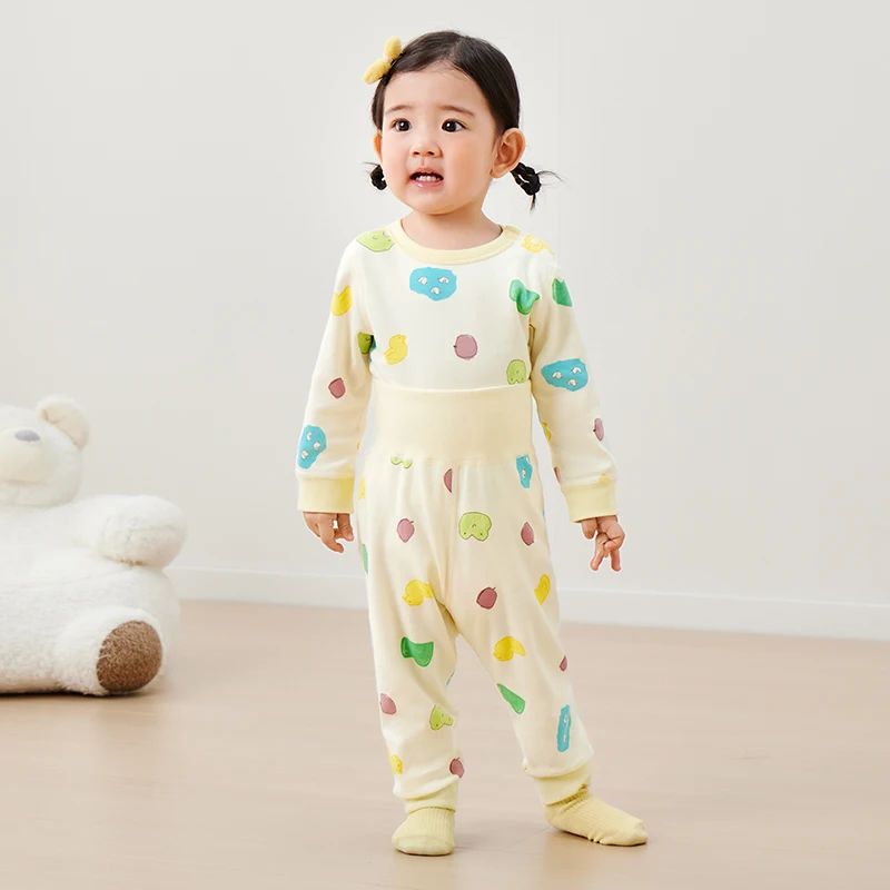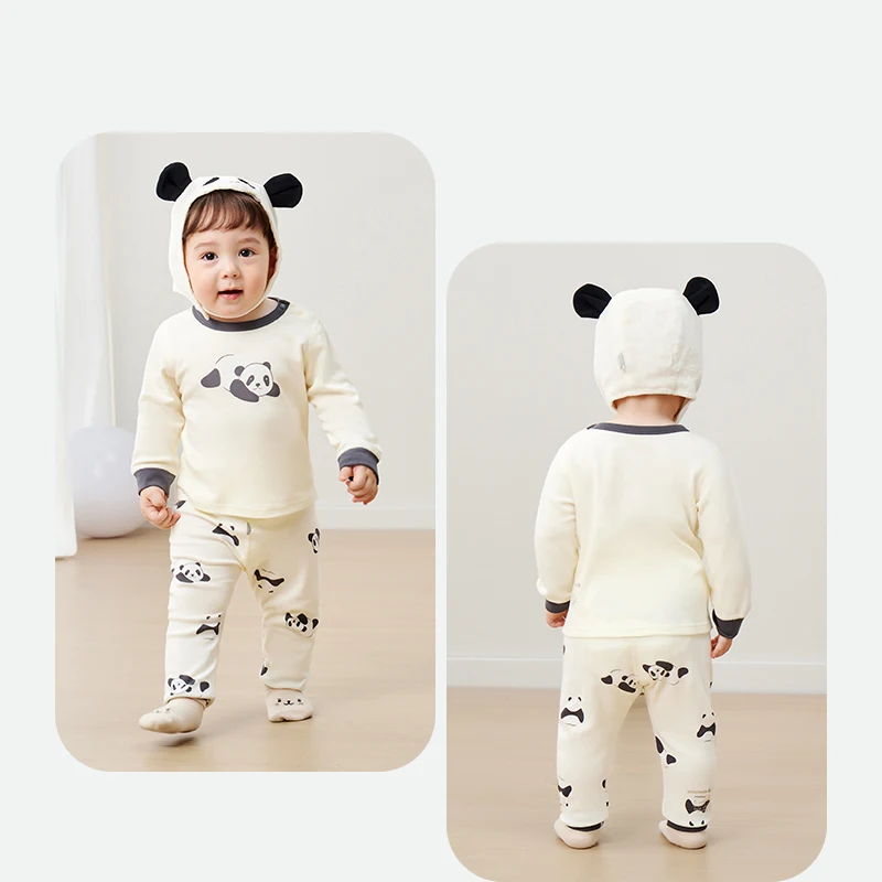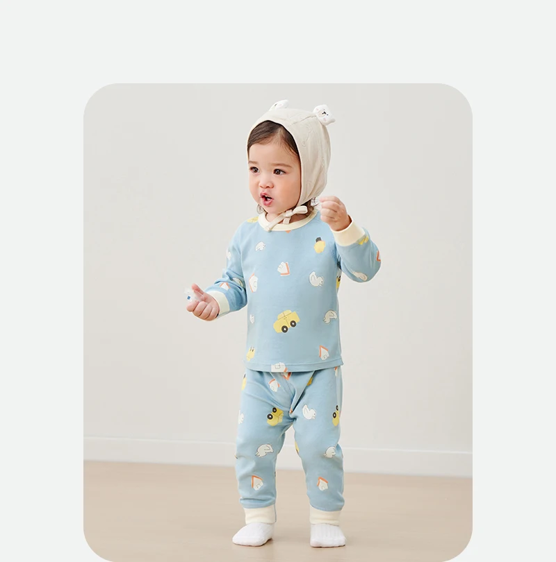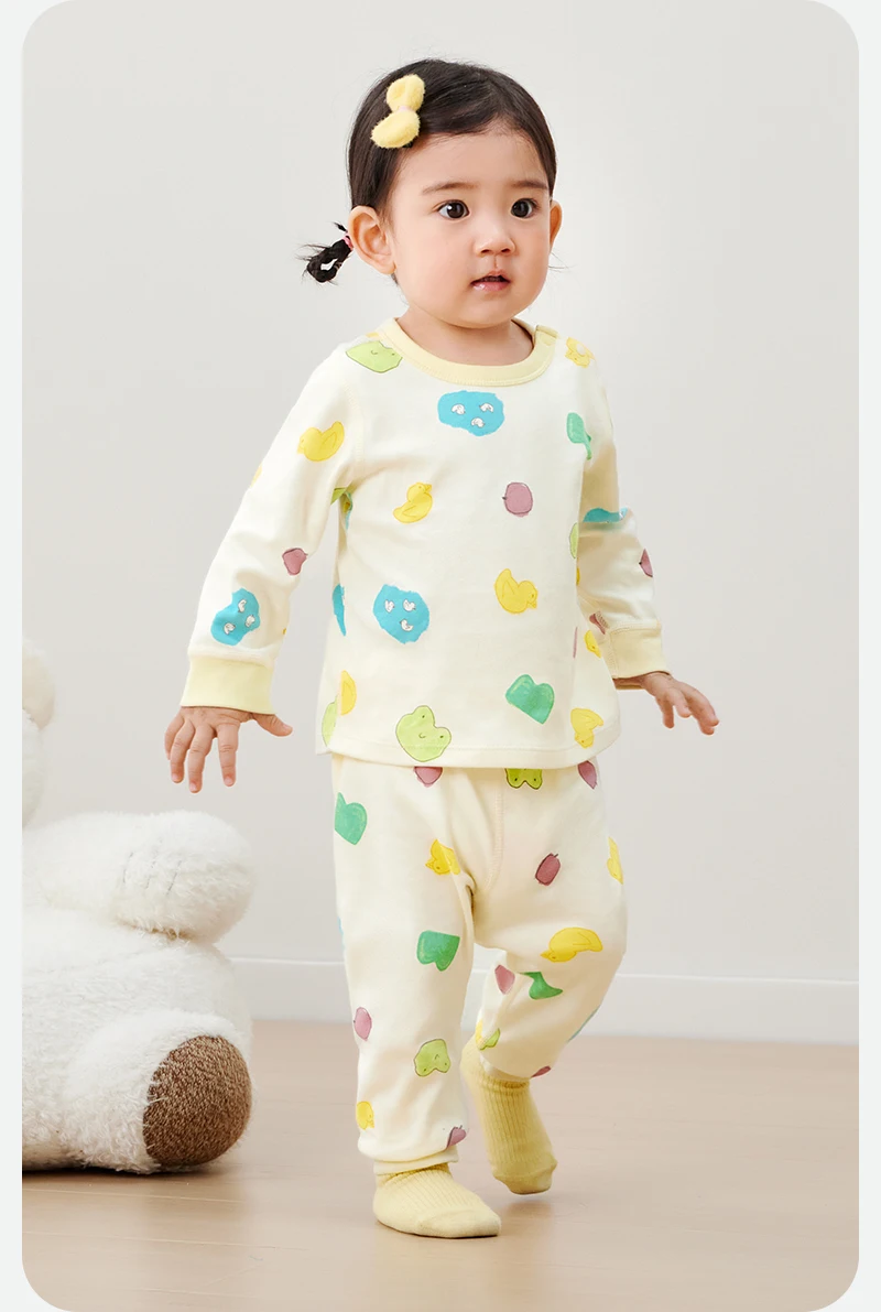 طقم ملابس داخلية حرارية صغيرة من القطن الخالص للأولاد والبنات 2025 نسخة ربيع جديدة بيجامات للأطفال