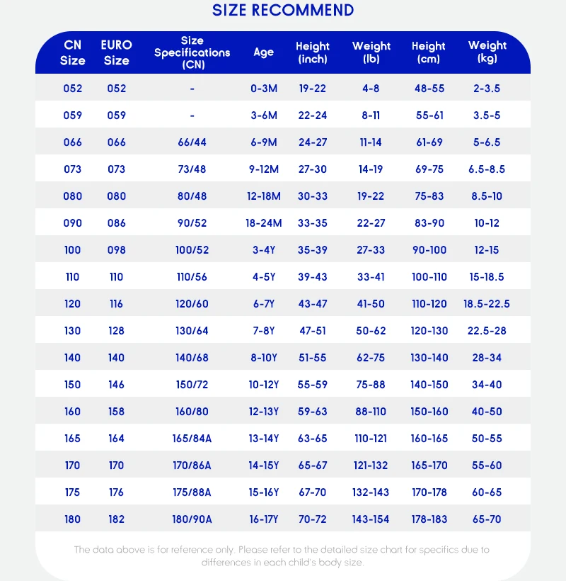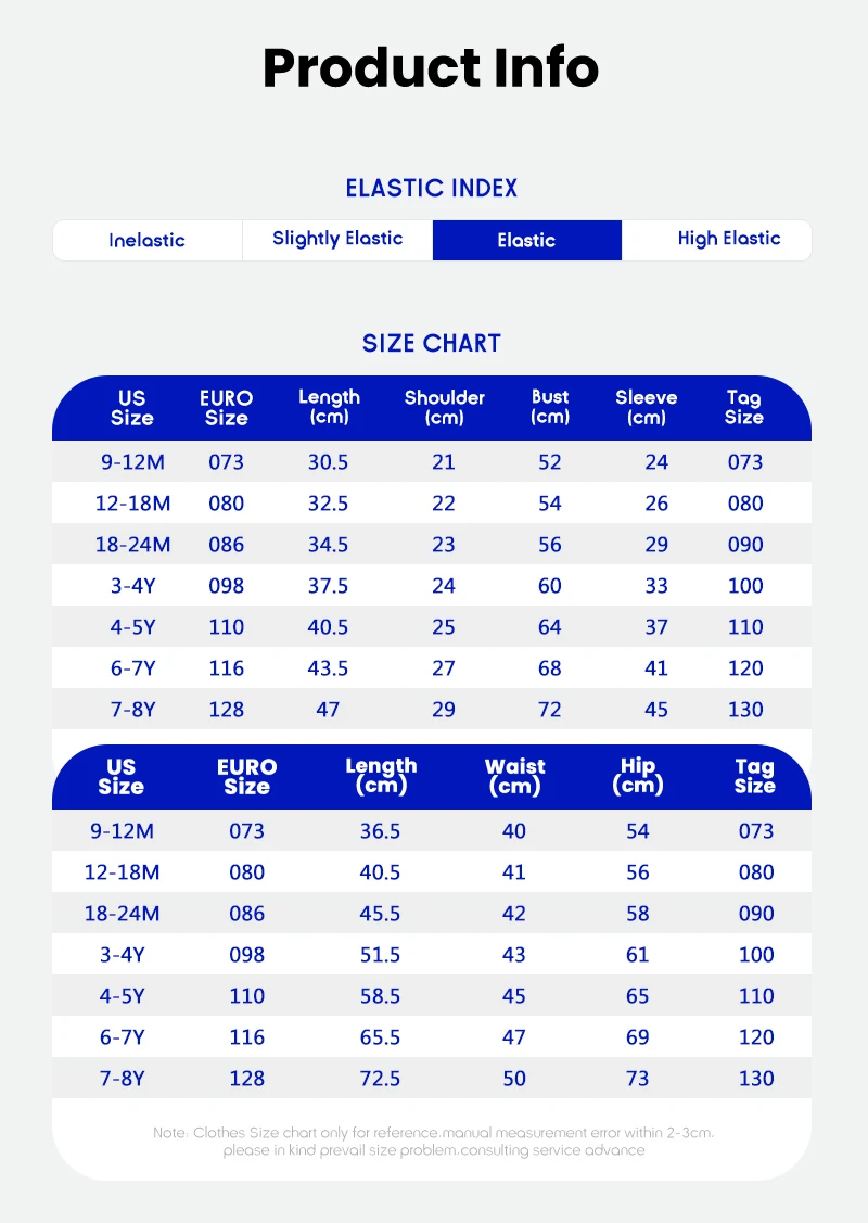 7-8 (130cm) 5-6 (120cm) 6-9M (73cm) 4T (110cm) 3T (100cm) 2T (90cm) 9-18M (80cm) |