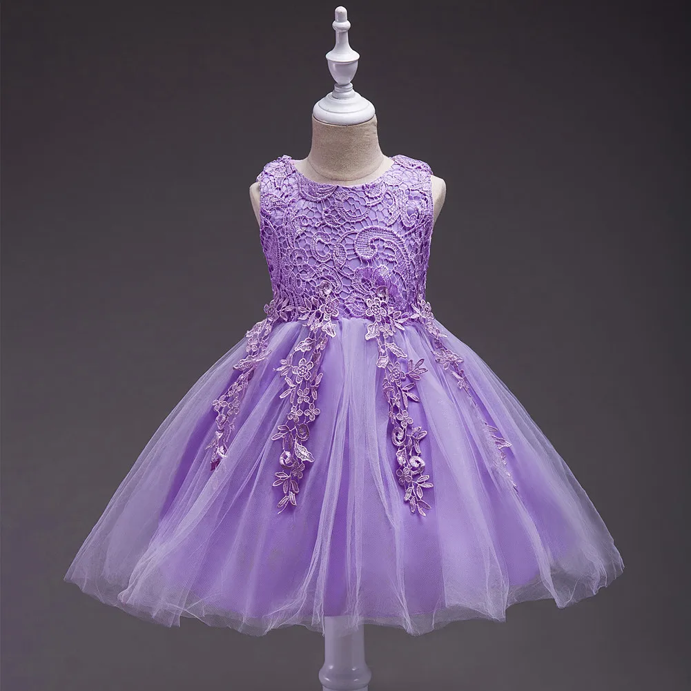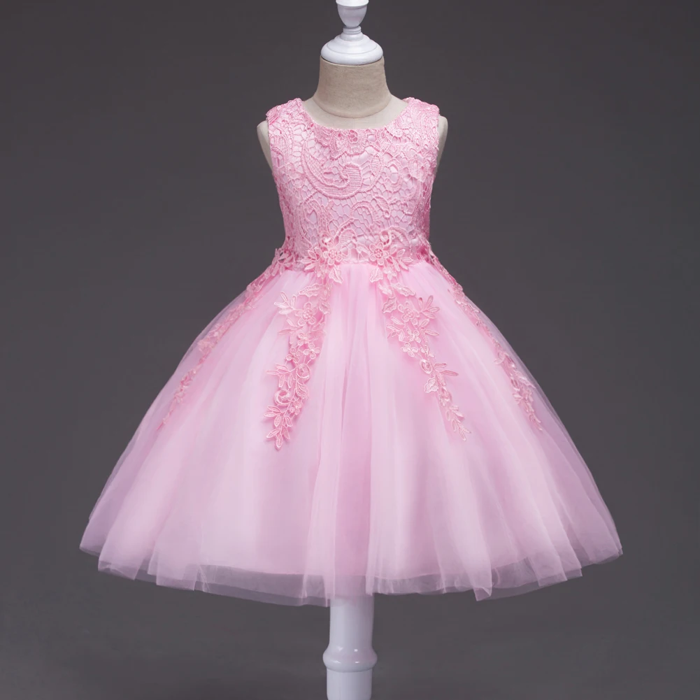 فستان زهور مطرز أنيق بلا أكمام، بتصميم أميرة راقٍ وتنورة منتفخة مثالية للخريف والشتاء. مصمم بدقة من الدانتيل الناعم ليمنح طفلتك إطلالة مميزة في المناسبات الخاصة. قصّة مريحة تناسب الحركة.